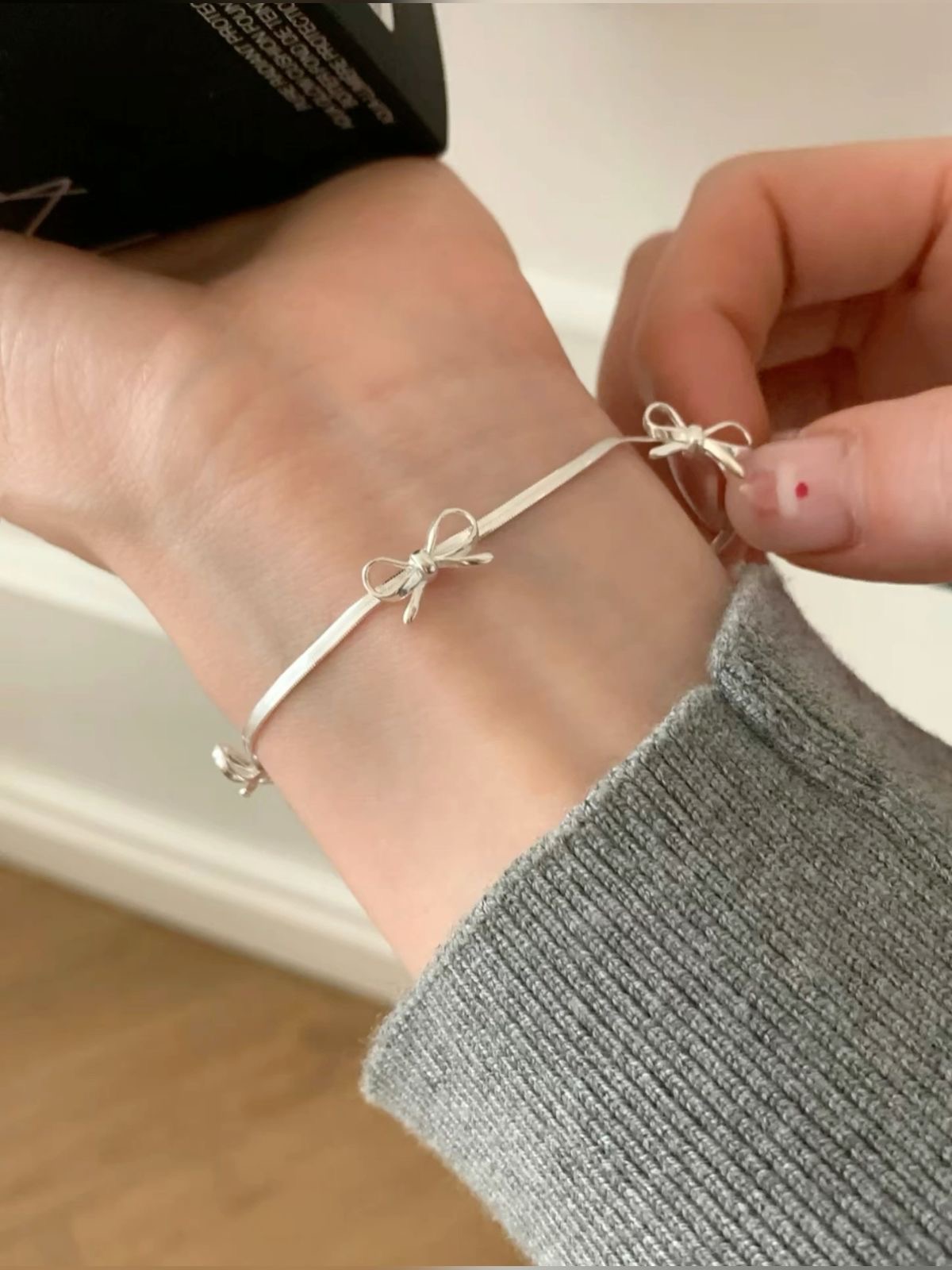 دستبند پاپیون ابکاری نقره💞