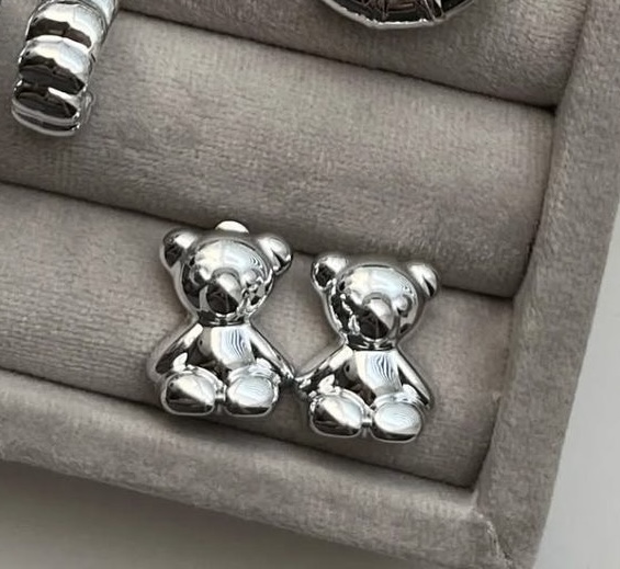گوشواره استیل ابکاری نقره تدی 🧸