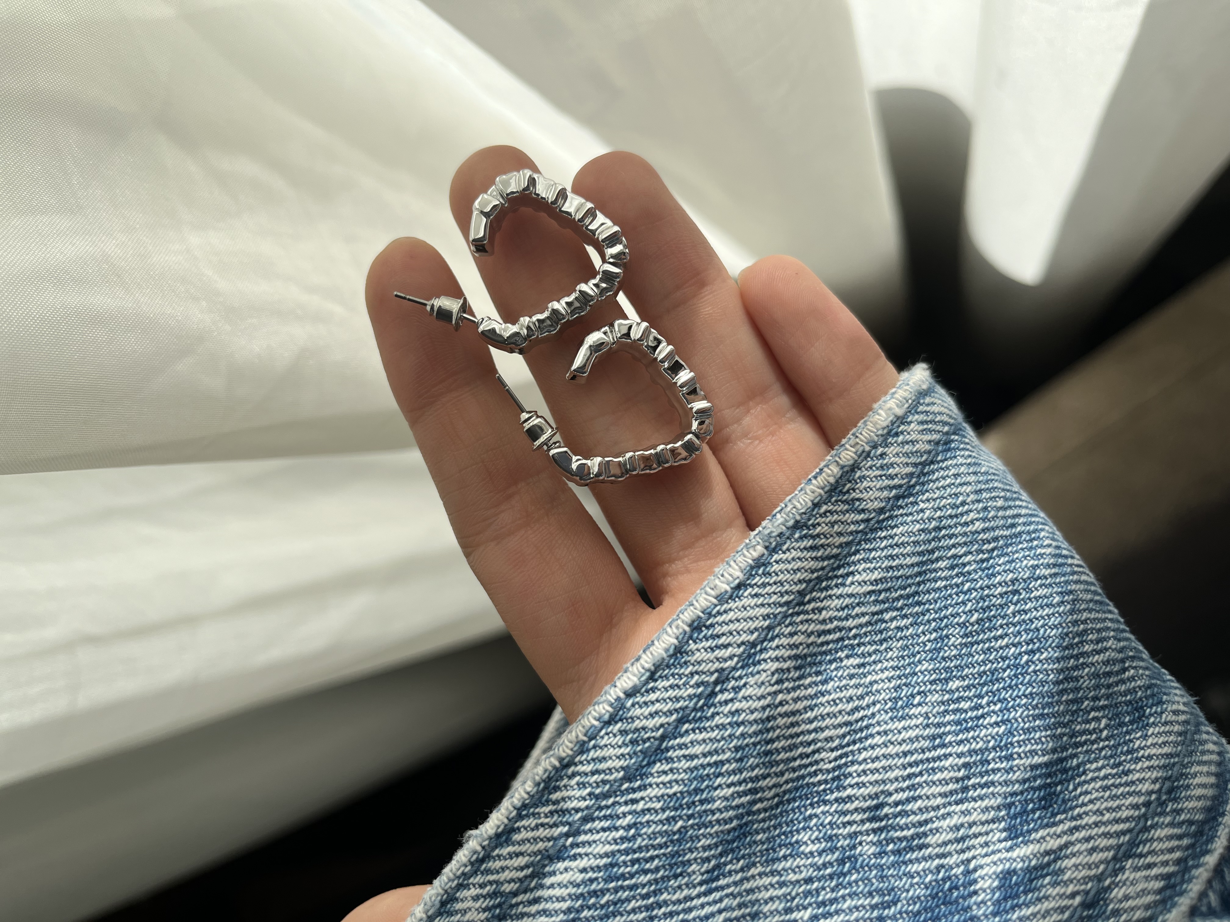 گوشواره استیل ابکاری نقره دفرمه مینیمال✨