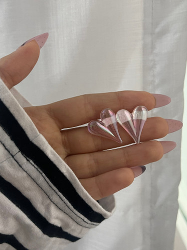 گوشواره آبنباتی استیل طرح قلب شیشه ای