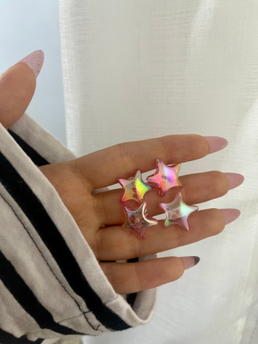 گوشواره آبنباتی مدل ستاره صورتی شیشه ای