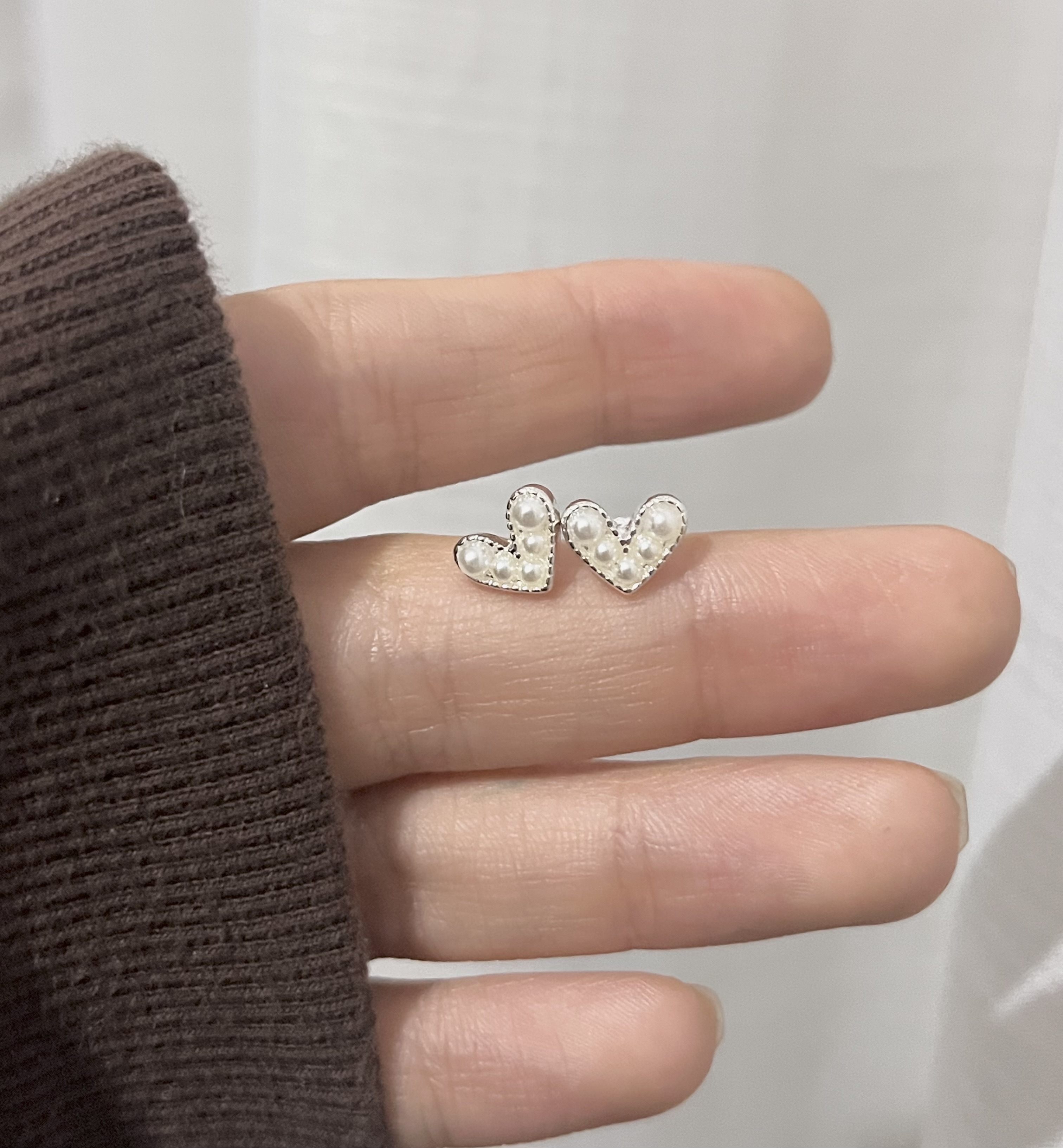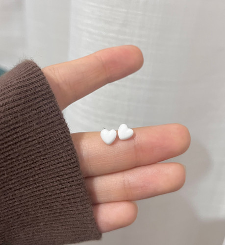 مینی گوشواره قلب سفید میخ نقره