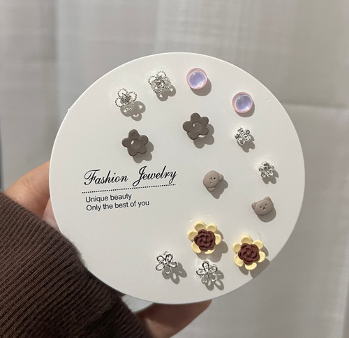 پک ۷ چفتی گوشواره اقتصادی میخ نقره مدل خرسی🧸