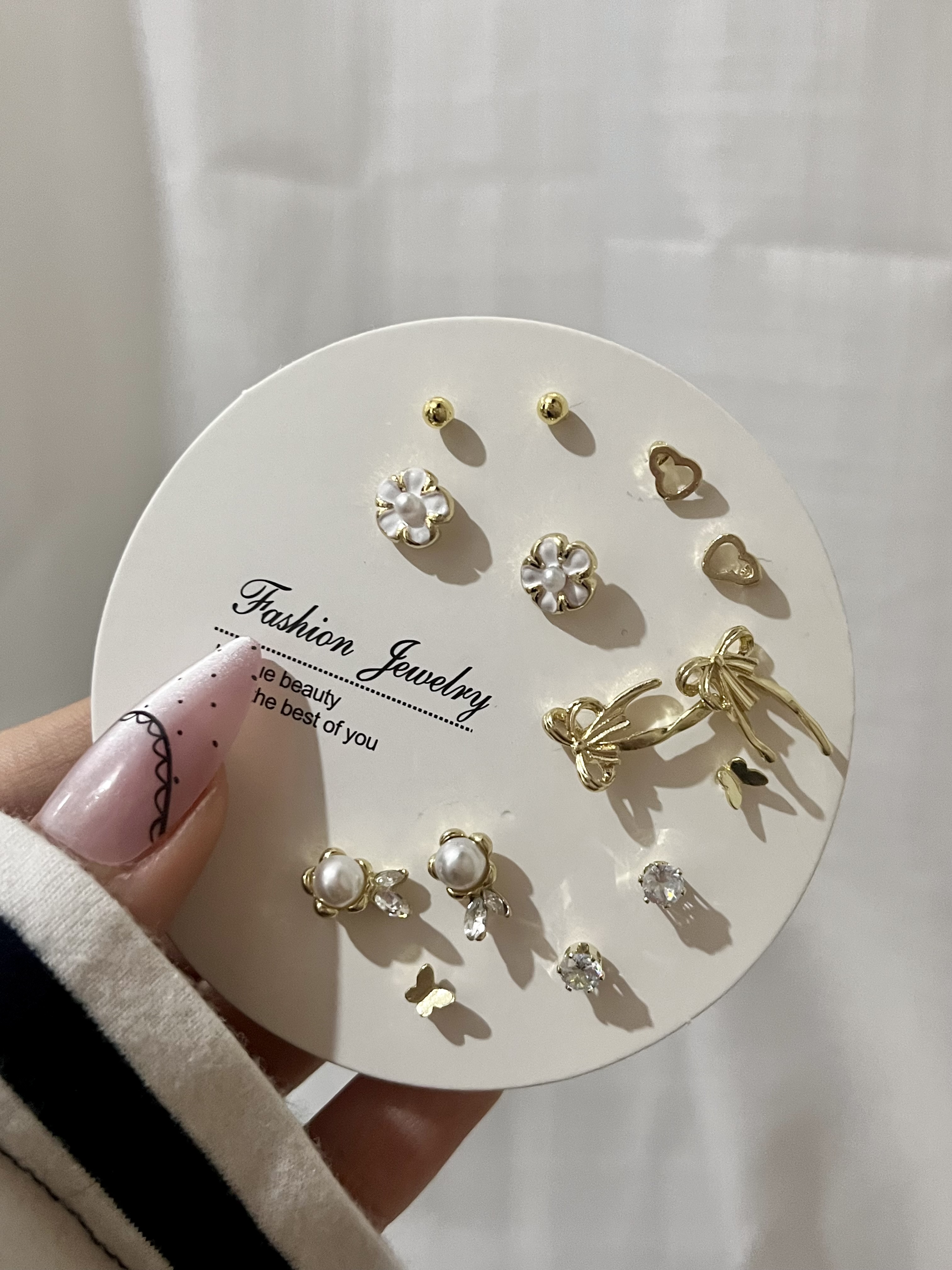 پک ۷ جفتی گوشواره میخ نقره مدل پاپیون طلایی