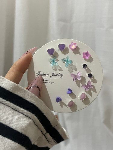 پک ۷ جفتی گوشواره میخ نقره بنفش پاستلی 💜