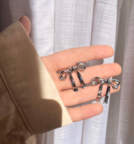 گوشواره پاپیون استیل سیلور 🎀✨
