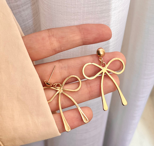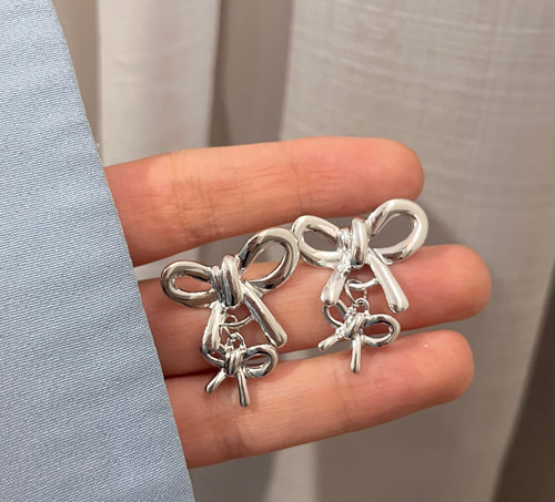 گوشواره پاپیون اویز دار پینترستی استیل🎀✨