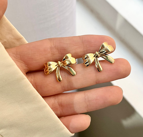 گوشواره پاپیون استیل رنگ طلایی🎀