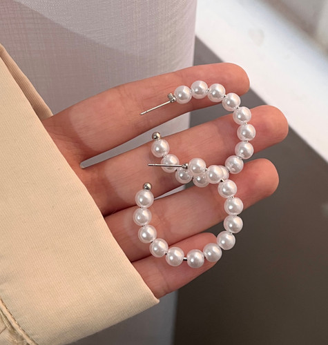 گوشواره حلقه ای مرواریدی 🎀🤍