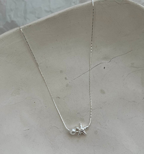 گردنبند مینیمال ستاره مروارید ابکاری نقره