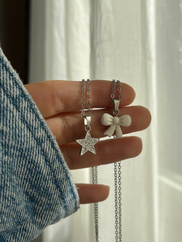 کالکشن گردنبند استیل طرح ستاره پاپیون