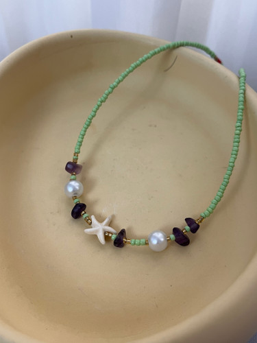 گردنبند ستاره دریایی سبز با سنگ طبیعی کد ۱