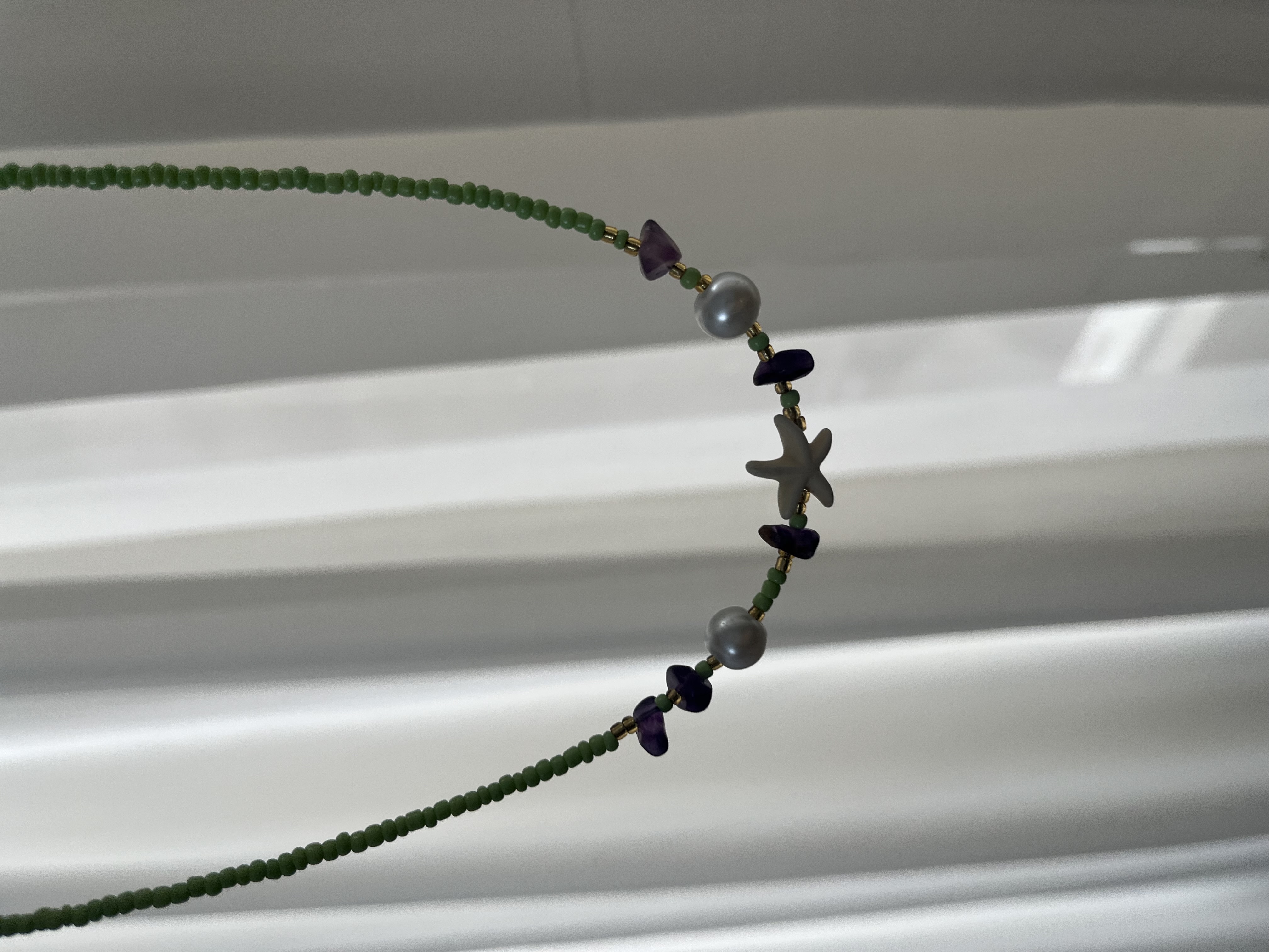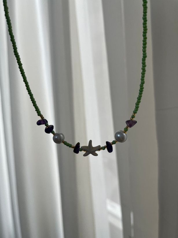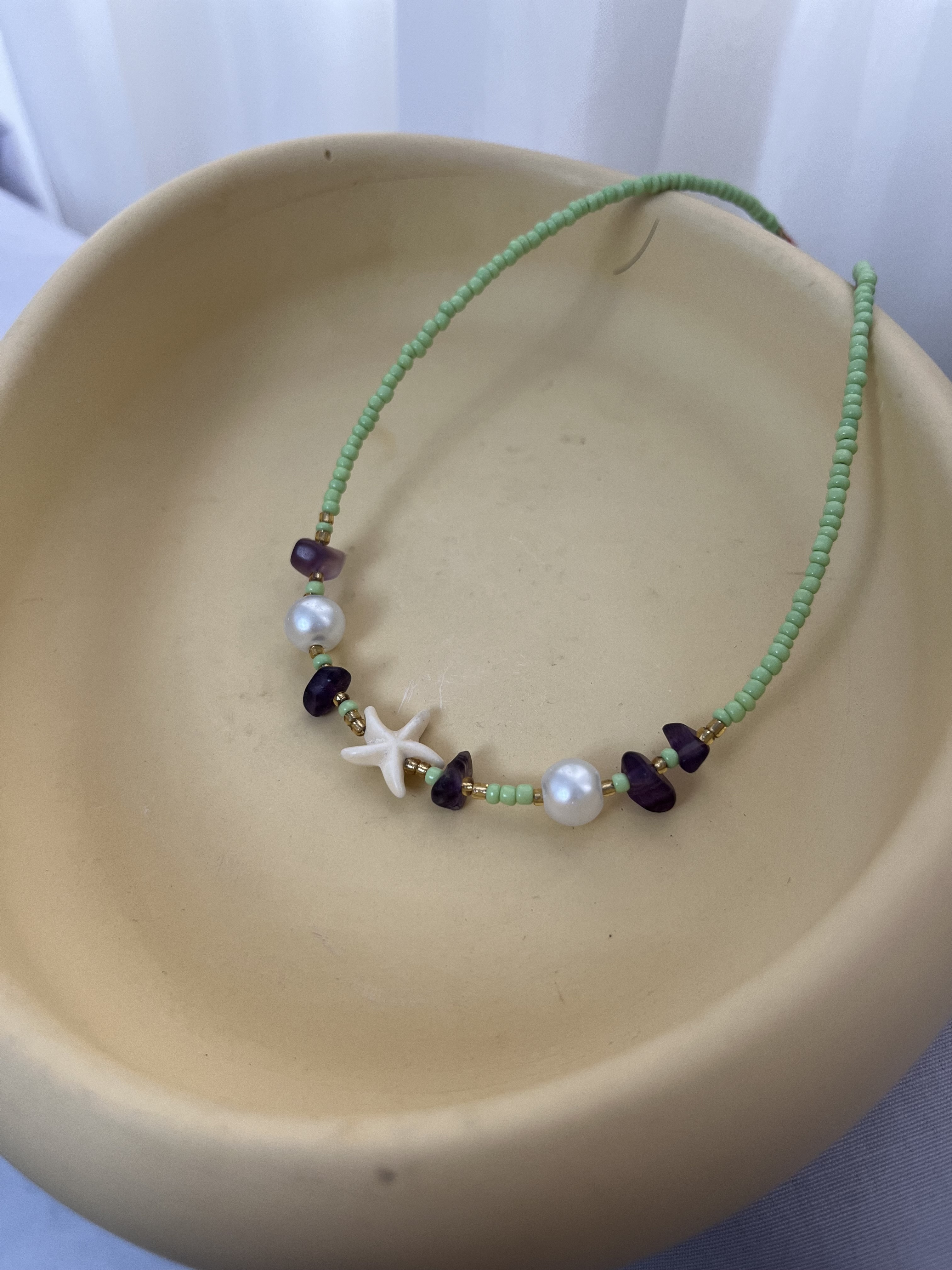 گردنبند ستاره دریایی سبز با سنگ طبیعی کد ۱