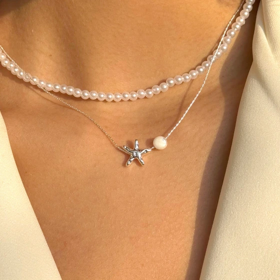 گردنبند مینیمال ستاره مروارید ابکاری نقره