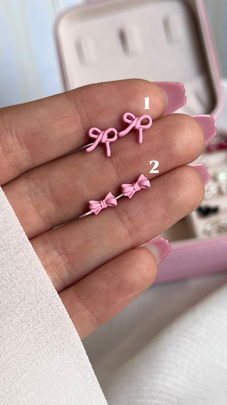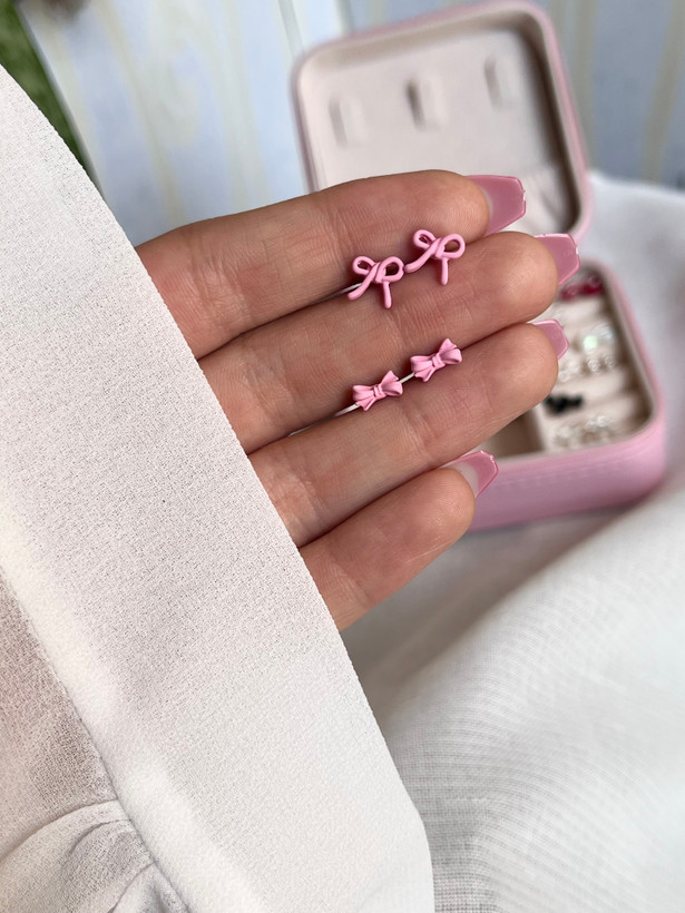 گوشواره میخ نقره پاپیون صورتی پاستلی