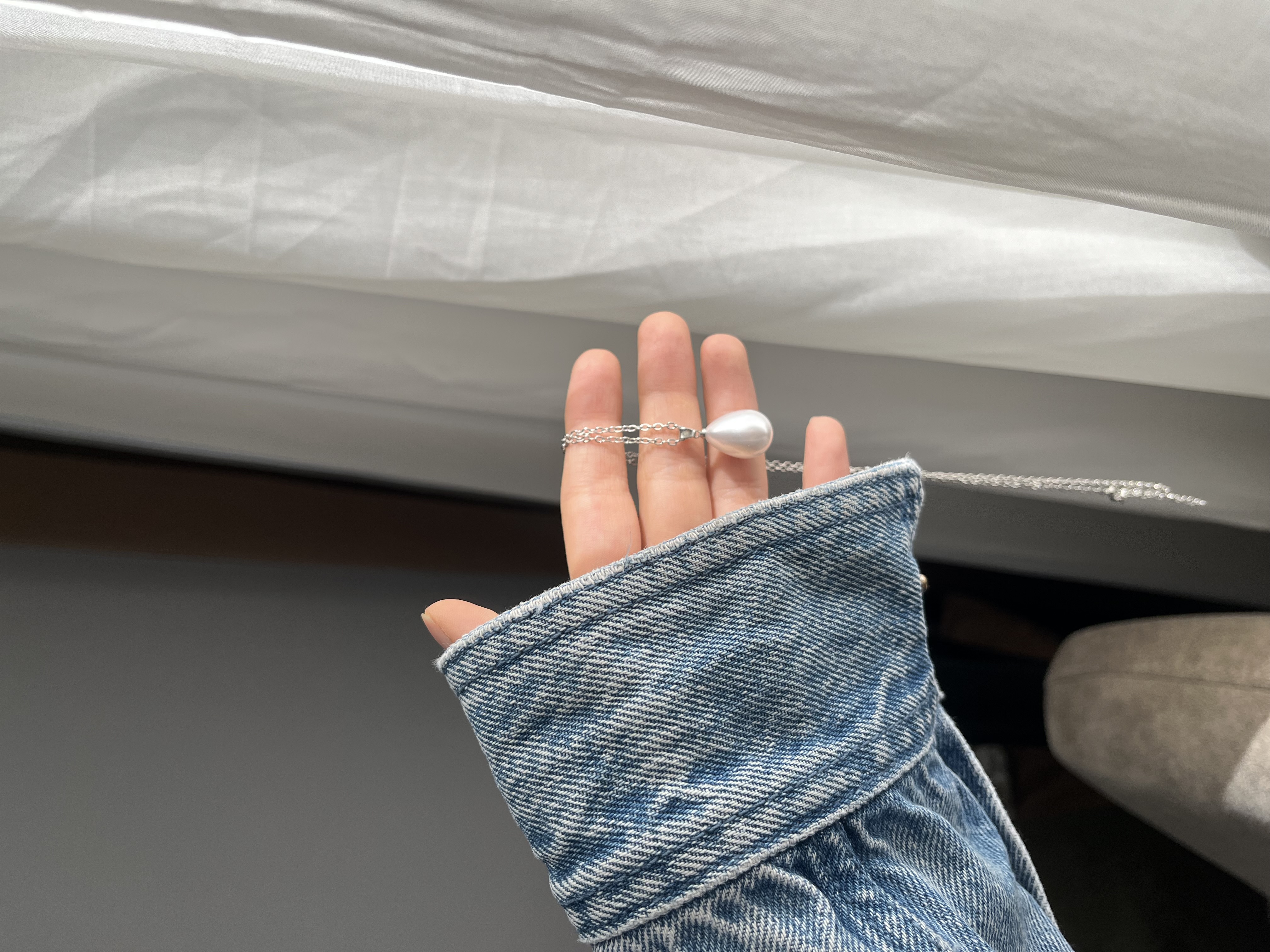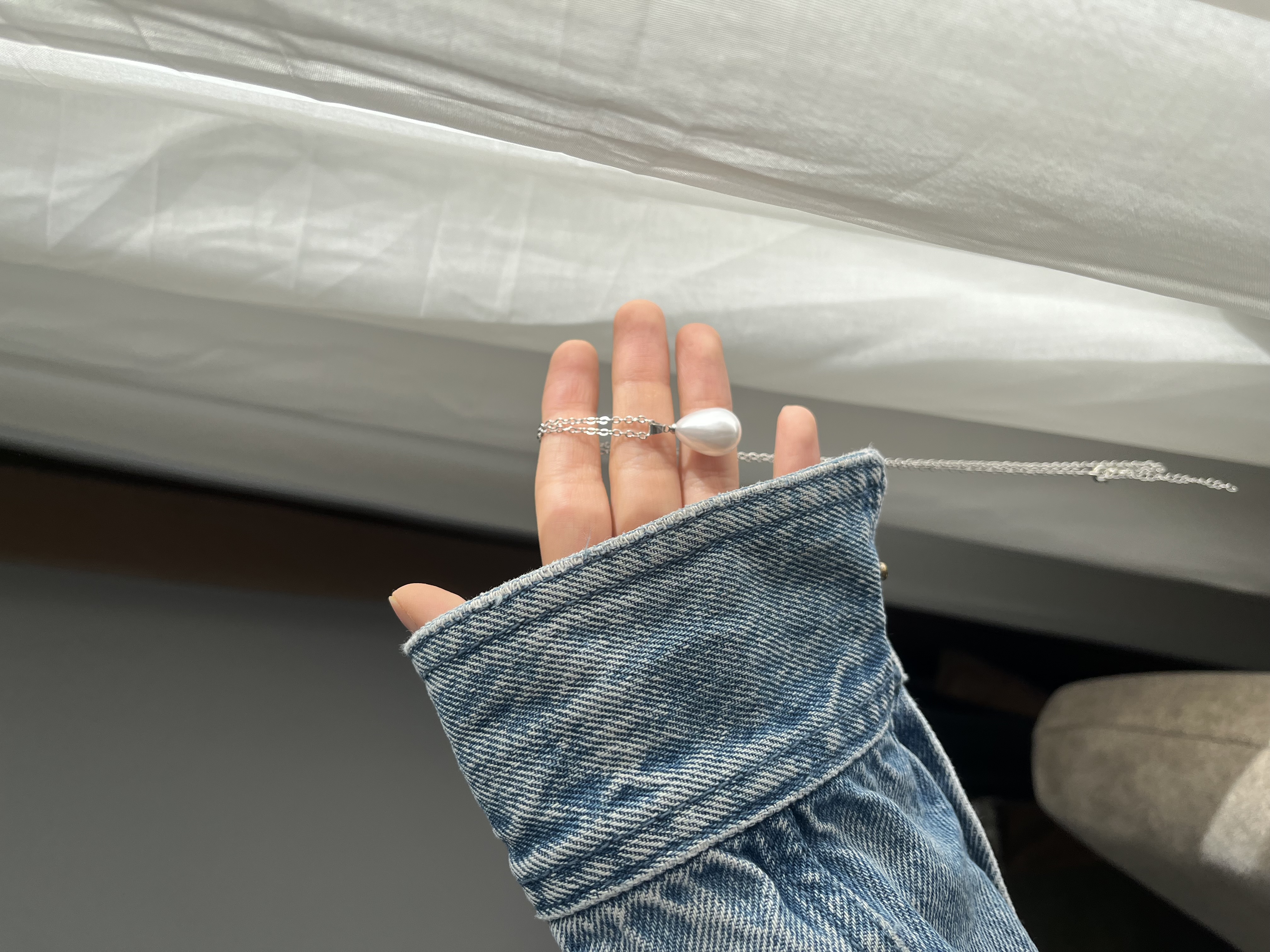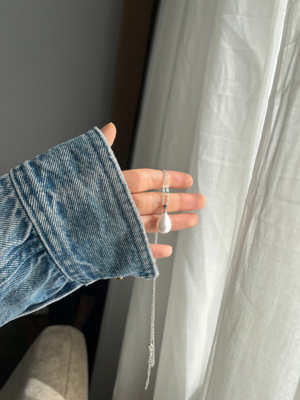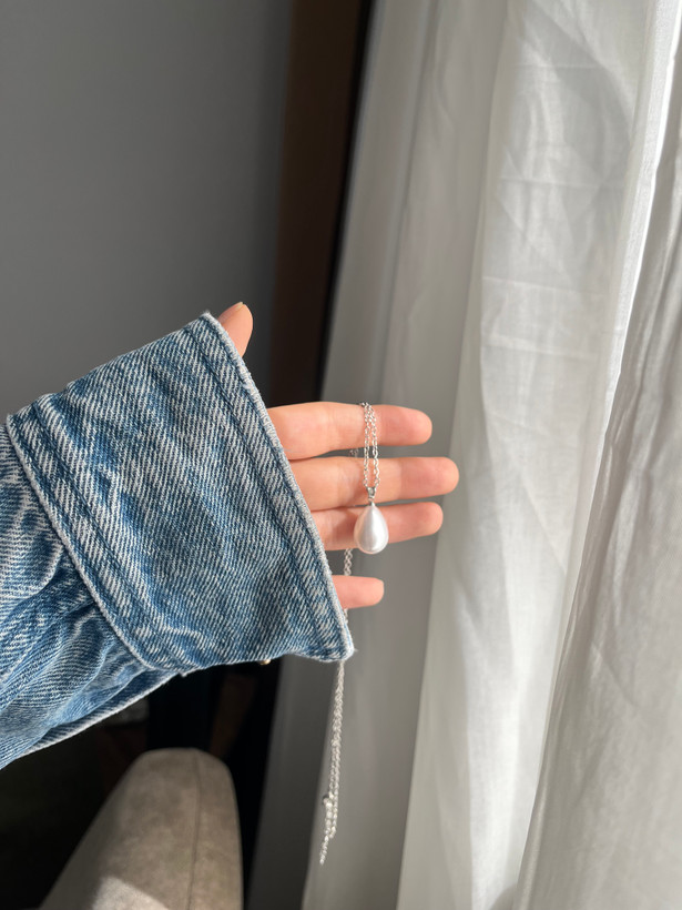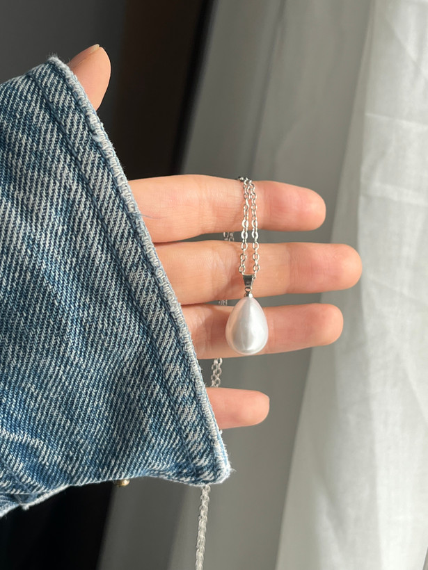 گردنبند زنجیر استیل با پلاک مرواریدی